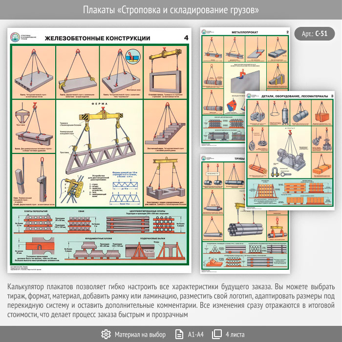 Плакаты «Строповка и складирование грузов» (С-51, 4 листа) в Черкесске купить