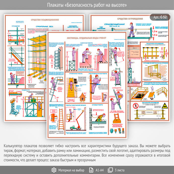 Плакаты «Безопасность работ на высоте» (С-52, 3 листа) в Черкесске купить