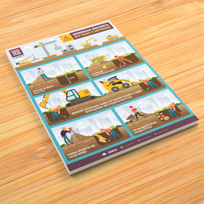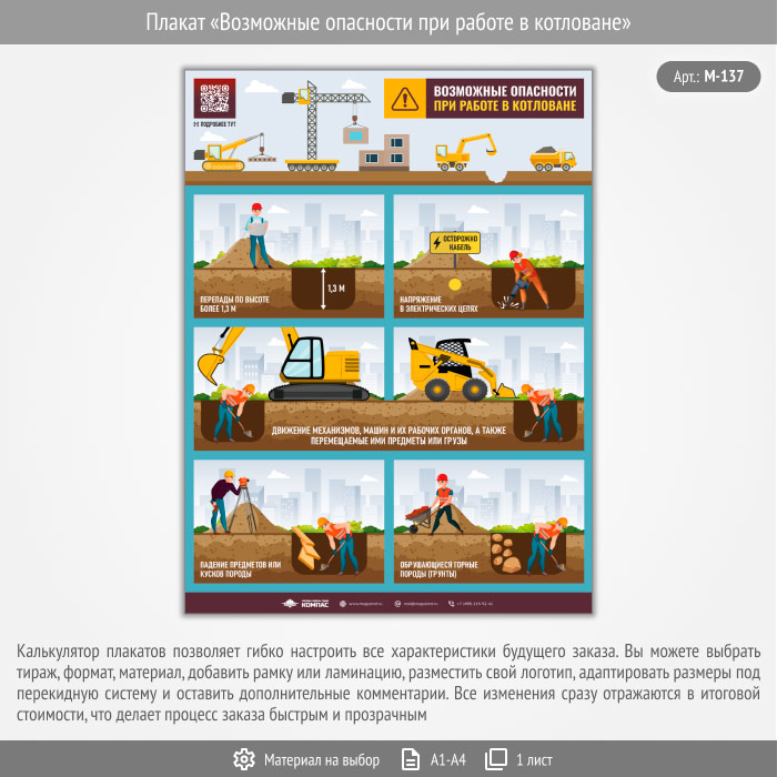 Плакат «Возможные опасности при работе в котловане» с QR (М-137, 1 лист) в Черкесске купить