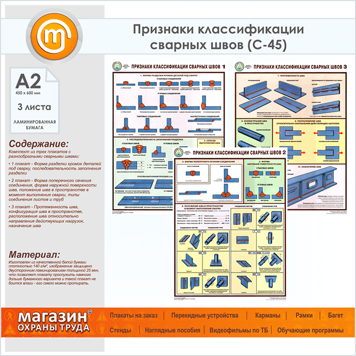 Плакаты «Признаки классификации сварных швов» (С-45, ламинированная бумага, А2, 3 листа) в Черкесске купить