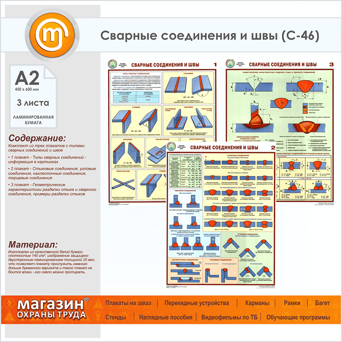 Плакаты «Сварные соединения и швы» (С-46, ламинированная бумага, А2, 3 листа) в Черкесске купить