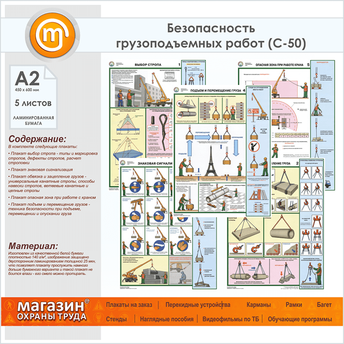 Плакаты «Безопасность грузоподъемных работ» (С-50, ламинированная бумага, А2, 5 листов) в Черкесске купить