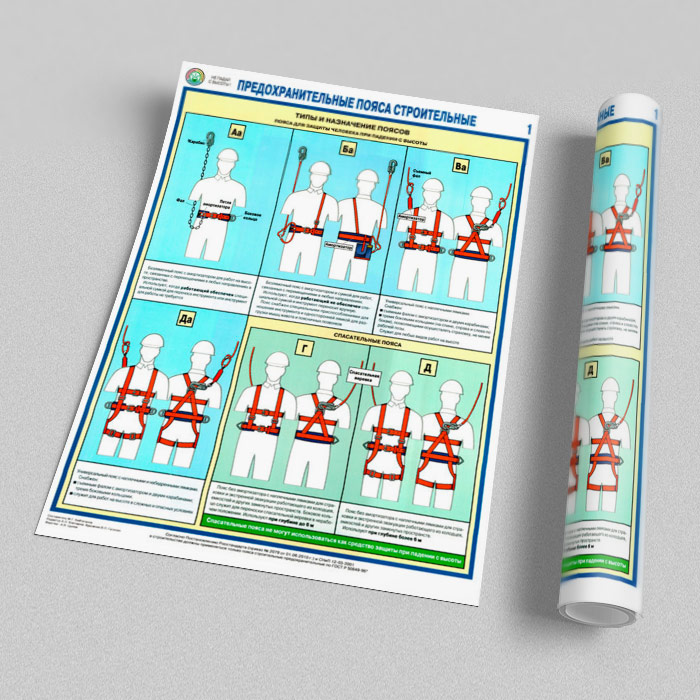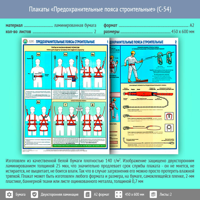 Плакаты «Предохранительные пояса строительные» (С-54, ламинированная бумага, А2, 2 листа) в Черкесске купить