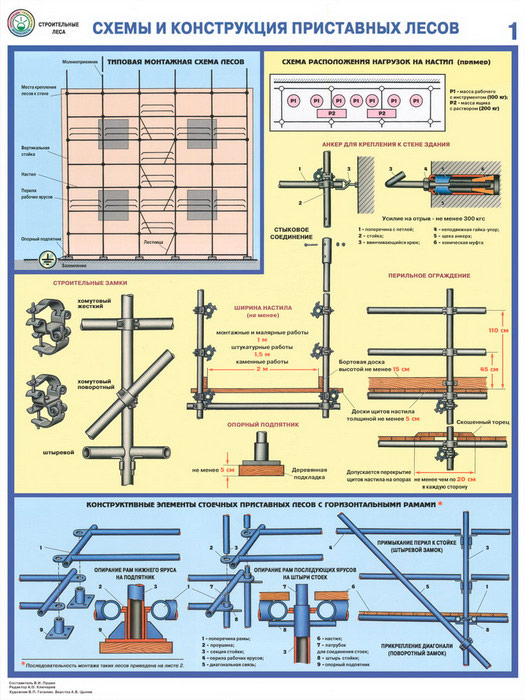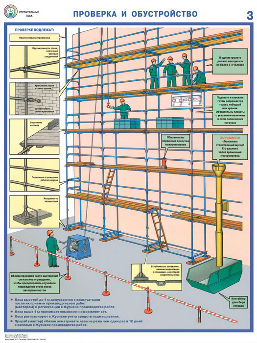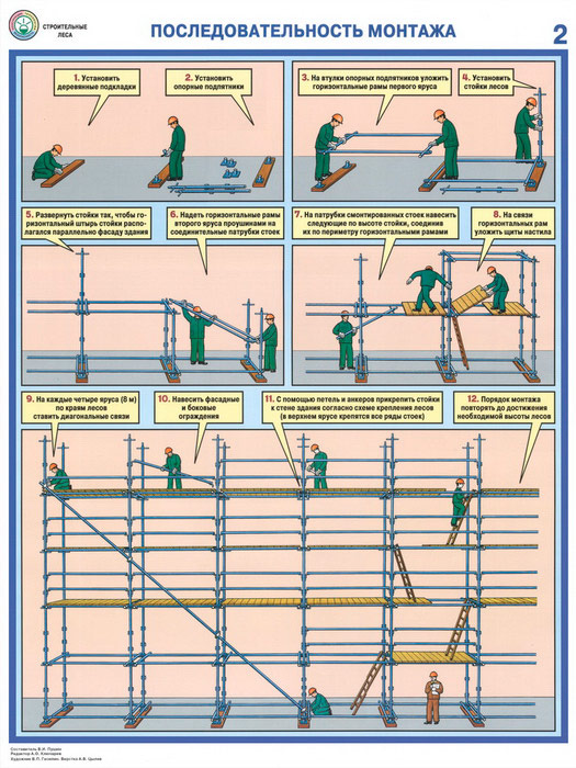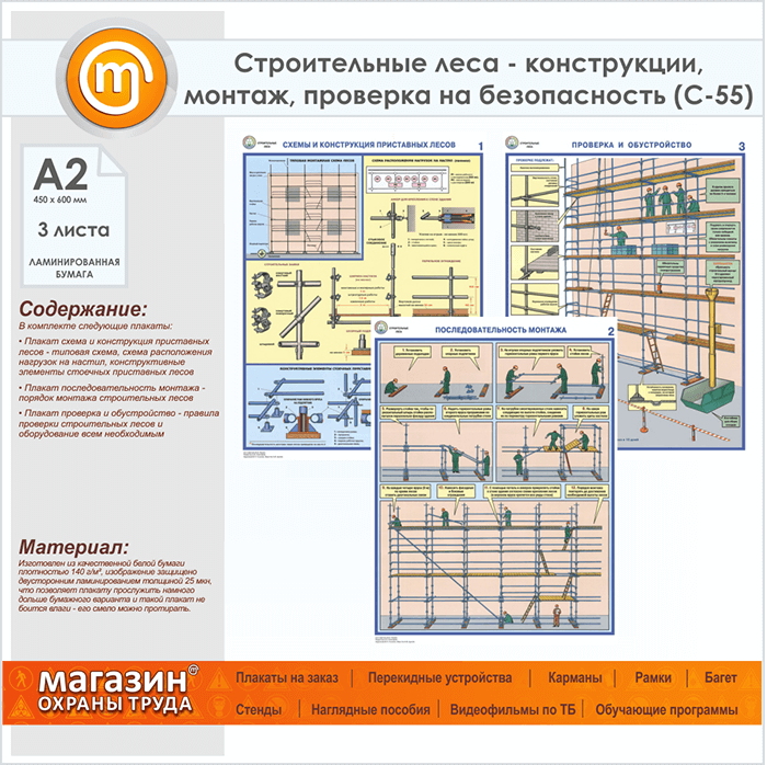Плакаты «Строительные леса - конструкции, монтаж, проверка на безопасность» (С-55, ламинированная бумага, А2, 3 листа) в Черкесске купить