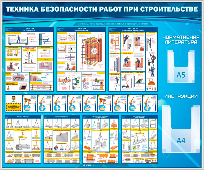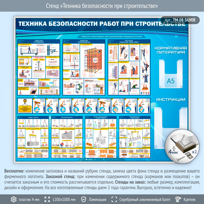 Стенд «Техника безопасности при строительстве» с 2 объемными карманами (TM-08-SILVER) в Черкесске купить