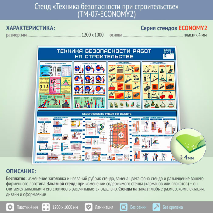 Стенд «Техника безопасности при строительстве» (TM-07-ECONOMY2) в Черкесске купить