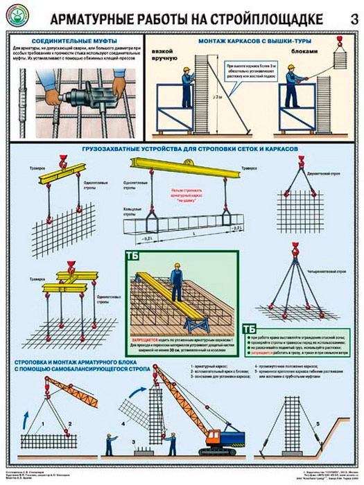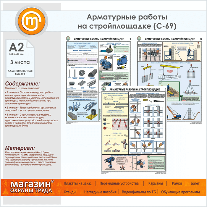 Плакаты «Арматурные работы на стройплощадке» (С-69, ламинированная бумага, А2, 3 листа) в Черкесске купить