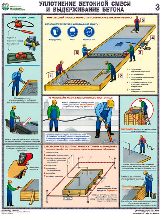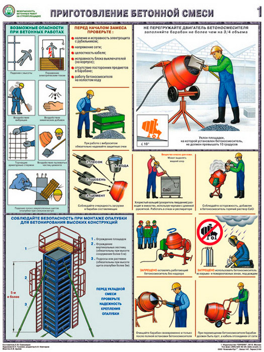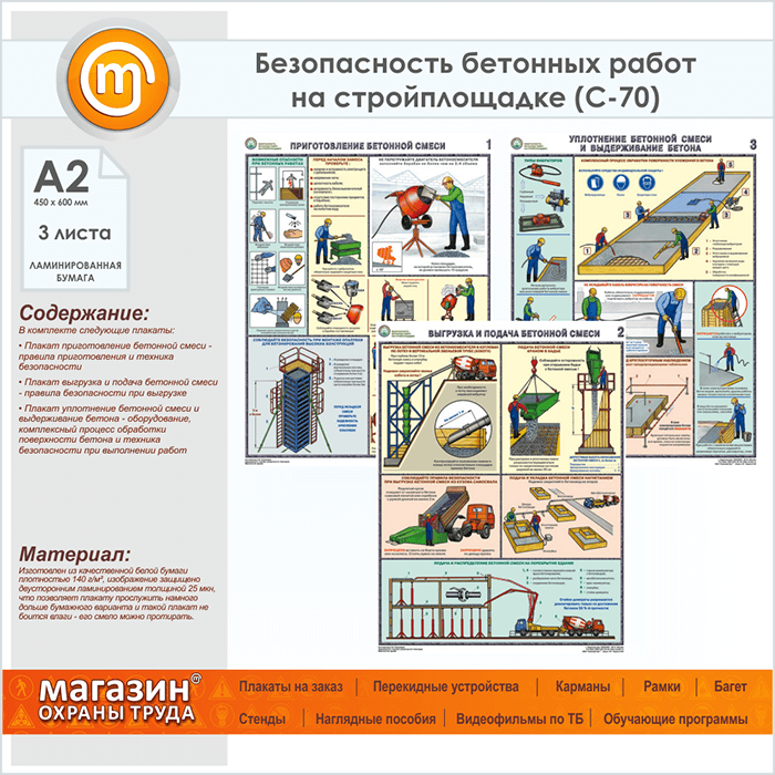 Плакаты «Безопасность бетонных работ на стройплощадке» (С-70, ламинированная бумага, А2, 3 листа) в Черкесске купить
