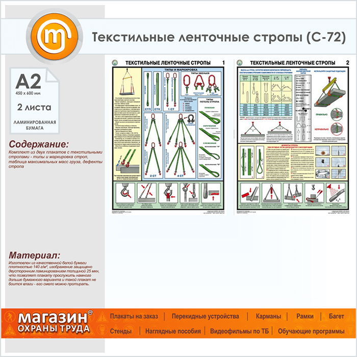 Плакаты «Текстильные ленточные стропы» (С-72, ламинированная бумага, А2, 2 листа) в Черкесске купить