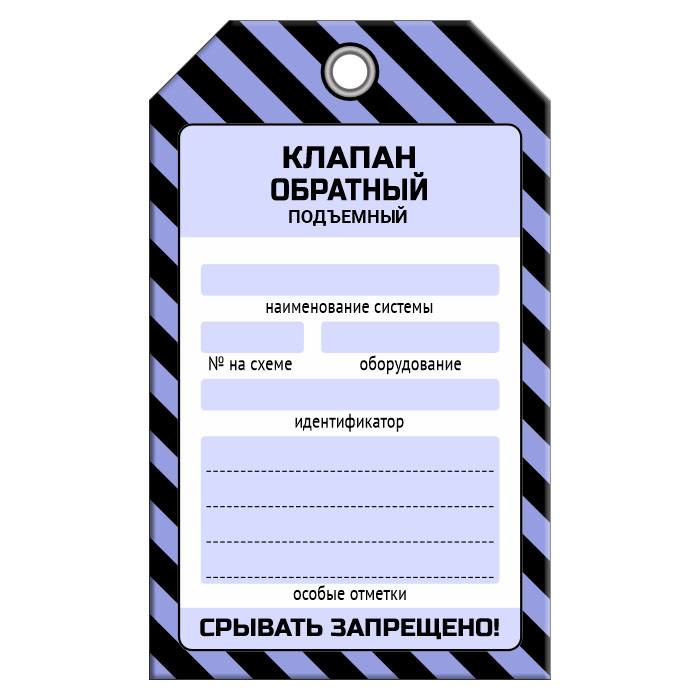 Бирка «КЛАПАН ОБРАТНЫЙ ПОДЪЕМНЫЙ» (1 шт., односторонняя, пластик, 70х115 мм) в Черкесске купить