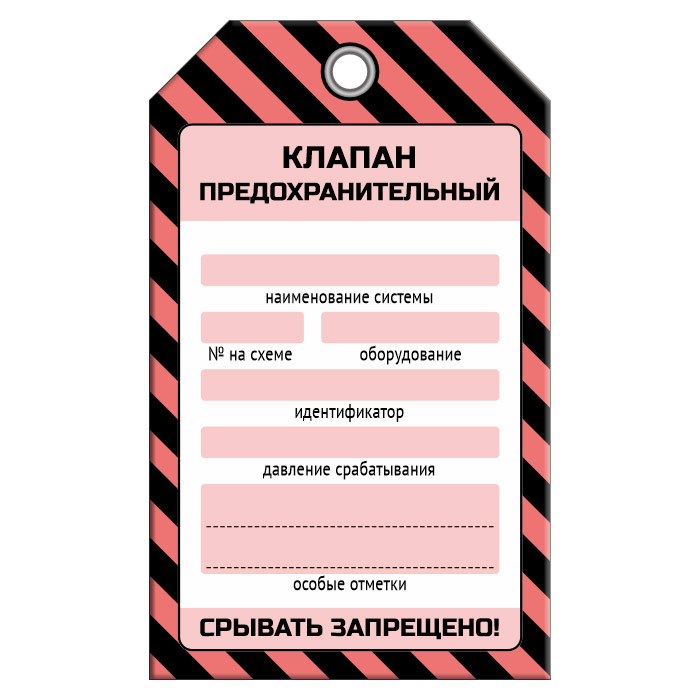 Бирка «КЛАПАН ПРЕДОХРАНИТЕЛЬНЫЙ» (1 шт., односторонняя, пластик, 70х115 мм) в Черкесске купить
