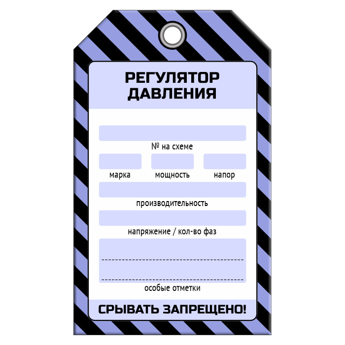 Бирка «РЕГУЛЯТОР ДАВЛЕНИЯ» (1 шт., односторонняя, пластик, 70х115 мм) в Черкесске купить
