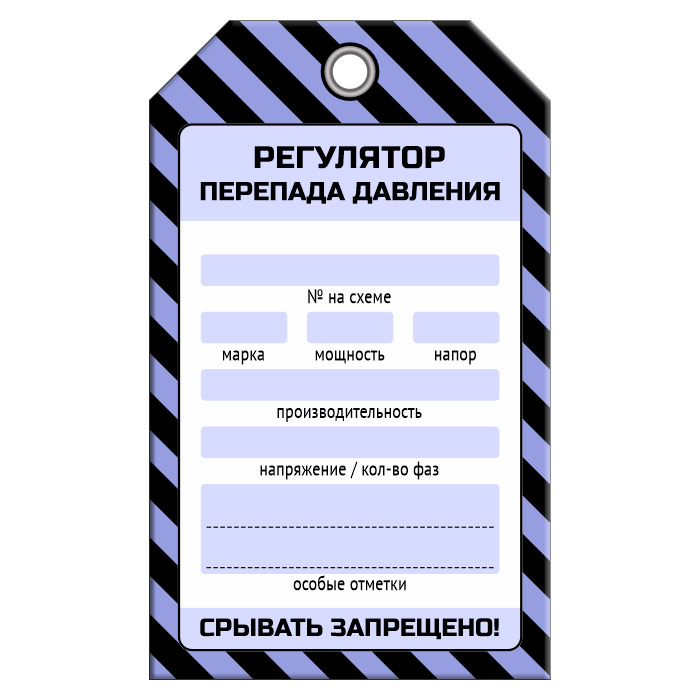 Бирка «РЕГУЛЯТОР ПЕРЕПАДА ДАВЛЕНИЯ» (1 шт., односторонняя, пластик, 70х115 мм) в Черкесске купить