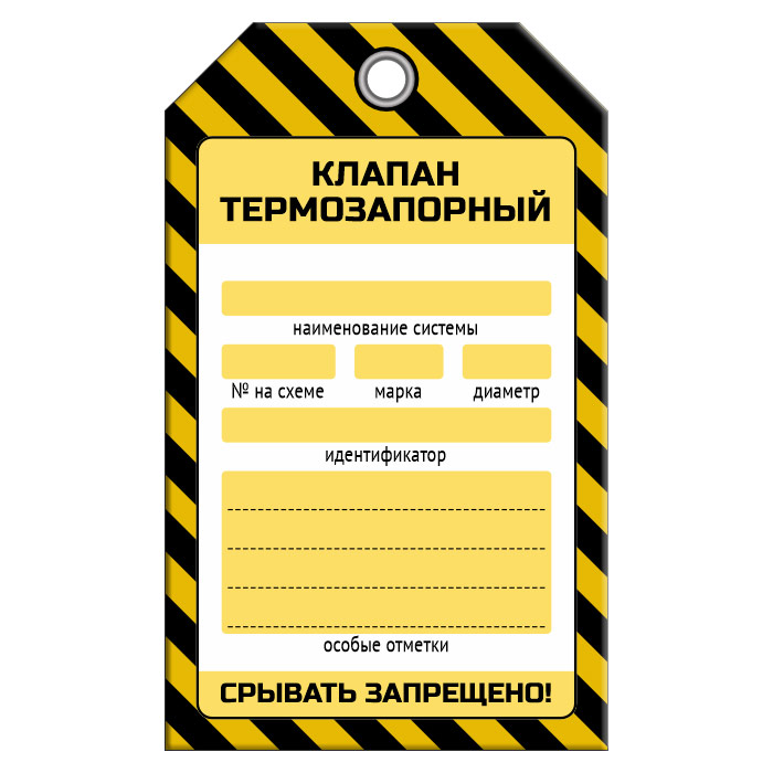 Бирка «КЛАПАН ТЕРМОЗАПОРНЫЙ» (1 шт., односторонняя, пластик, 70х115 мм) в Черкесске купить
