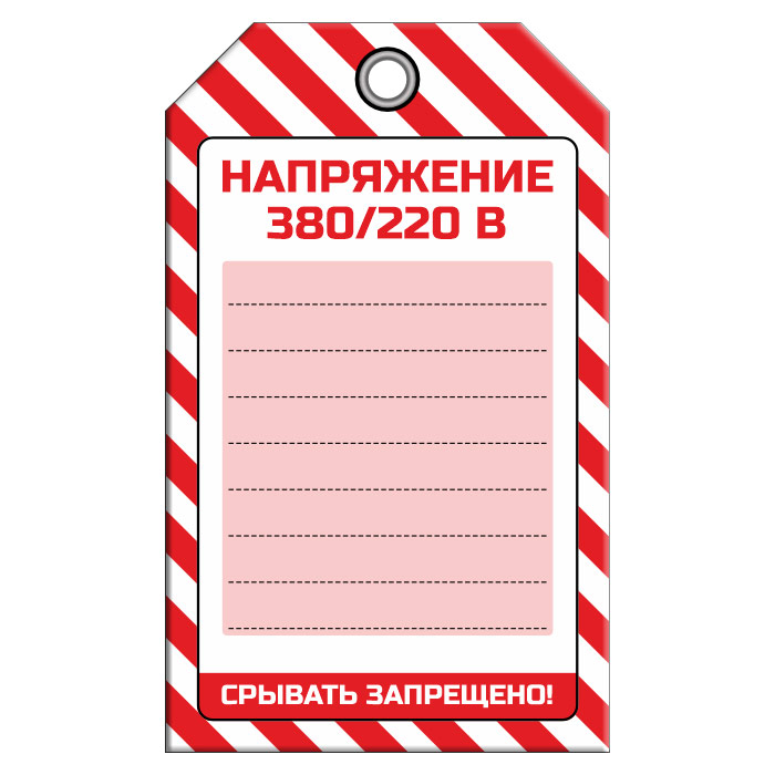 Бирка «НАПРЯЖЕНИЕ 380/220 В» (1 шт., односторонняя, пластик, 70х115 мм) в Черкесске купить