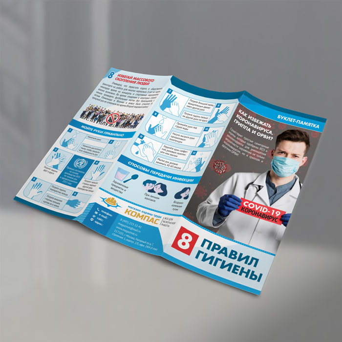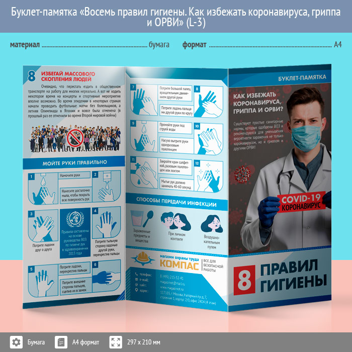 Буклет-памятка «Восемь правил гигиены. Как избежать коронавируса, гриппа и ОРВИ» (L-3) в Черкесске купить