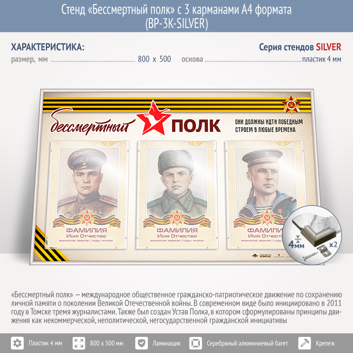 Стенд «Бессмертный полк» с 3 карманами А4 формата (BP-3K-SILVER) в Черкесске купить