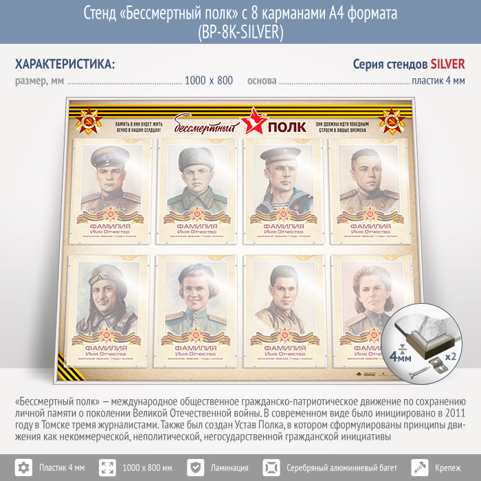 Стенд «Бессмертный полк» с 8 карманами А4 формата (BP-8K-SILVER) в Черкесске купить