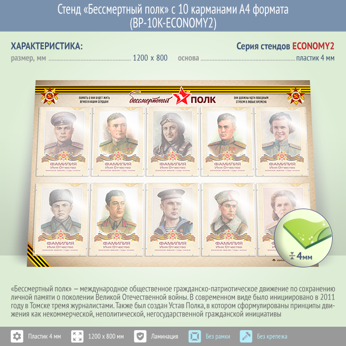 Стенд «Бессмертный полк» с 10 карманами А4 формата (BP-10K-ECONOMY2) в Черкесске купить
