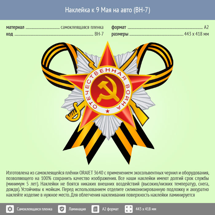 Наклейка к 9 Мая на авто А2 формата (BH-7) в Черкесске купить