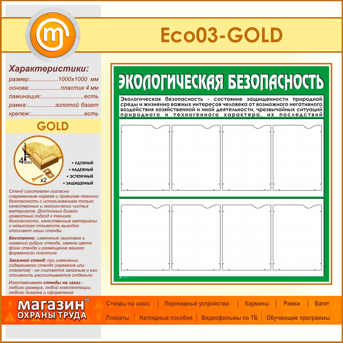 Стенд «Экологическая безопасность» с 8 карманами (ECO-03-GOLD) в Черкесске купить