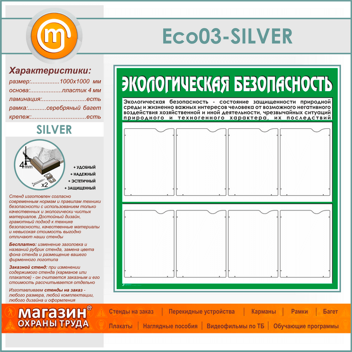 Стенд «Экологическая безопасность» с 8 карманами (ECO-03-SILVER) в Черкесске купить