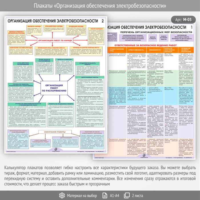 Плакаты «Организация обеспечения электробезопасности» (М-03, 2 листа) в Черкесске купить