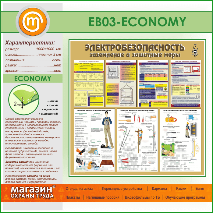 Стенд «Электробезопасность. Заземление и защитные меры» (EB-03-ECONOMY) в Черкесске купить