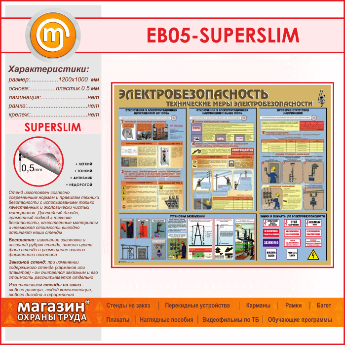Стенд «Электробезопасность. Технические меры электробезопасности» (EB-05-SUPERSLIM) в Черкесске купить