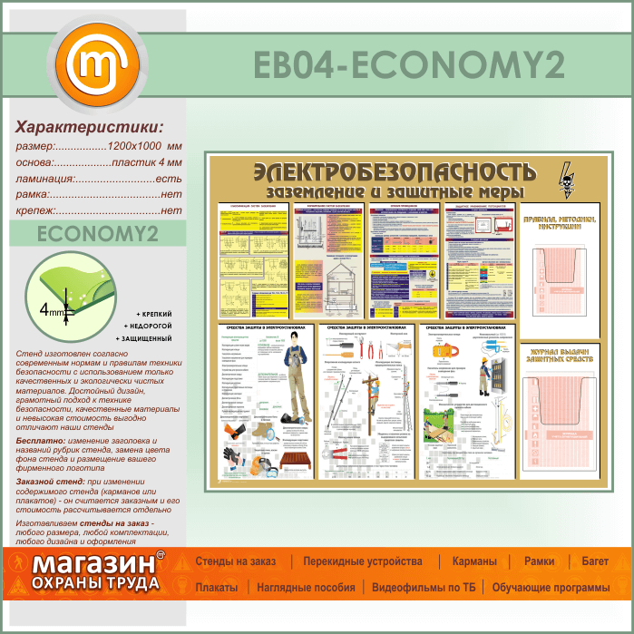 Стенд «Электробезопасность. Заземление и защитные меры» с 2 объемными карманами (EB-04-ECONOMY2) в Черкесске купить