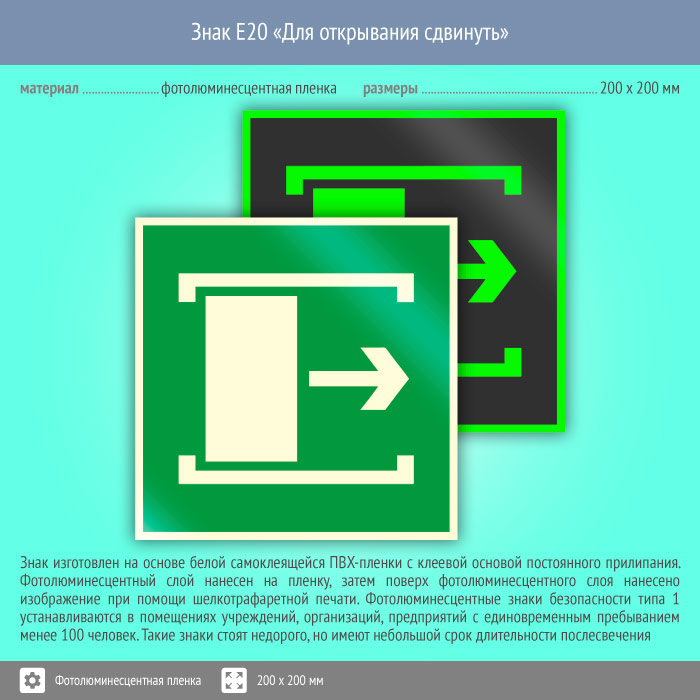 Знак E20 «Для открывания сдвинуть» (фотолюминесцентная пленка, 200х200 мм) в Черкесске купить