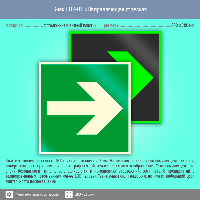 Знак E02-01 «Направляющая стрелка» (фотолюминесцентный пластик, 200х200 мм) в Черкесске купить