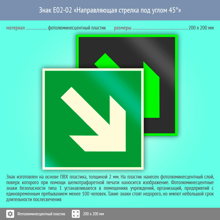 Знак E02-02 «Направляющая стрелка под углом 45°» (фотолюминесцентный пластик, 200х200 мм) в Черкесске купить