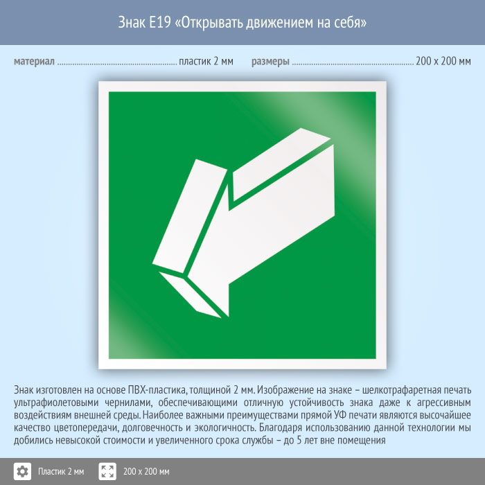 Знак E19 «Открывать движением на себя» (пластик, 200х200 мм) в Черкесске купить