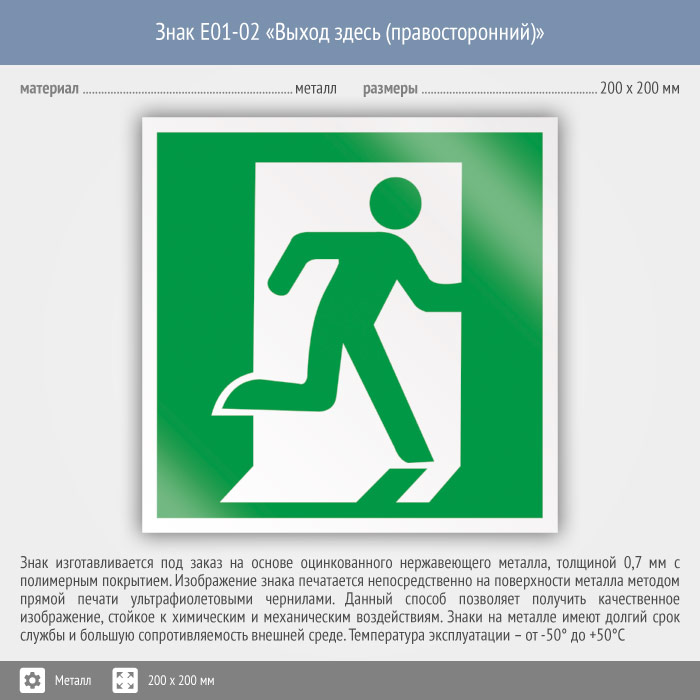 Знак E01-02 «Выход здесь (правосторонний)» (металл, 200х200 мм) в Черкесске купить