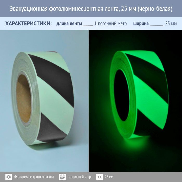 Эвакуационная фотолюминесцентная лента, 25 мм (черно-белая) в Черкесске купить