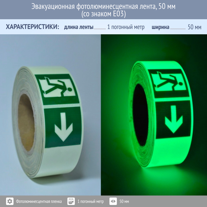 Эвакуационная фотолюминесцентная лента, 50 мм (со знаком E03) в Черкесске купить