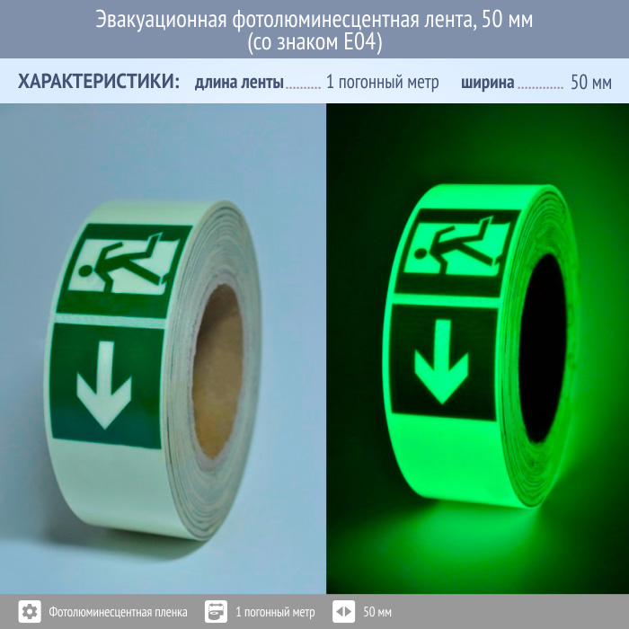 Эвакуационная фотолюминесцентная лента, 50 мм (со знаком E04) в Черкесске купить