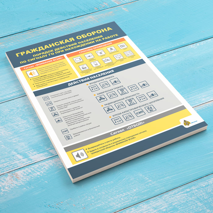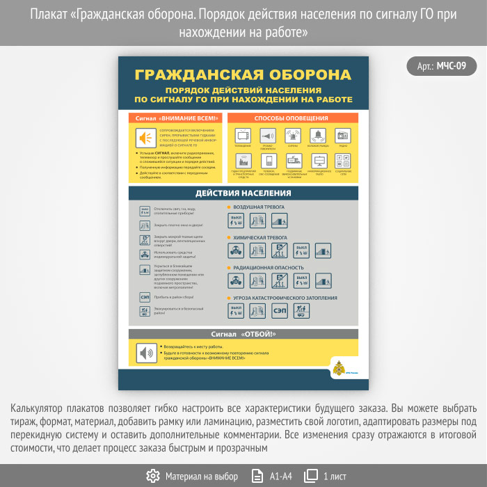 Плакат «Гражданская оборона. Порядок действия населения по сигналу ГО при нахождении на работе» (МЧС-09, 1 лист) в Черкесске купить