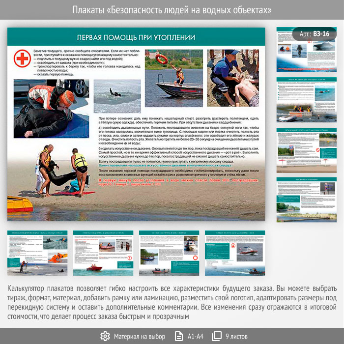 Плакаты «Безопасность людей на водных объектах» (ВЗ-16, 9 листов) в Черкесске купить