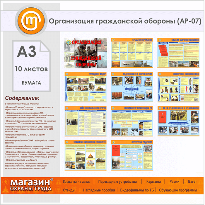Плакаты «Организация гражданской обороны» (АР-07, бумага, А3, 10 листов) в Черкесске купить