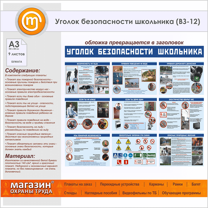 Плакаты «Уголок безопасности школьника» (ВЗ-12, бумага, А3, 10 листов) в Черкесске купить