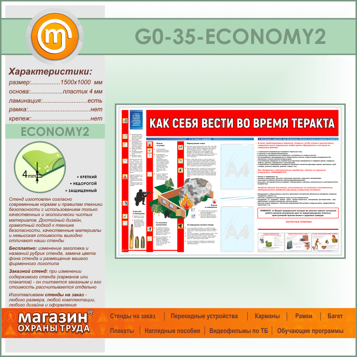 Стенд «Как себя вести во время теракта» c 2 карманами (GO-35-ECONOMY2) в Черкесске купить