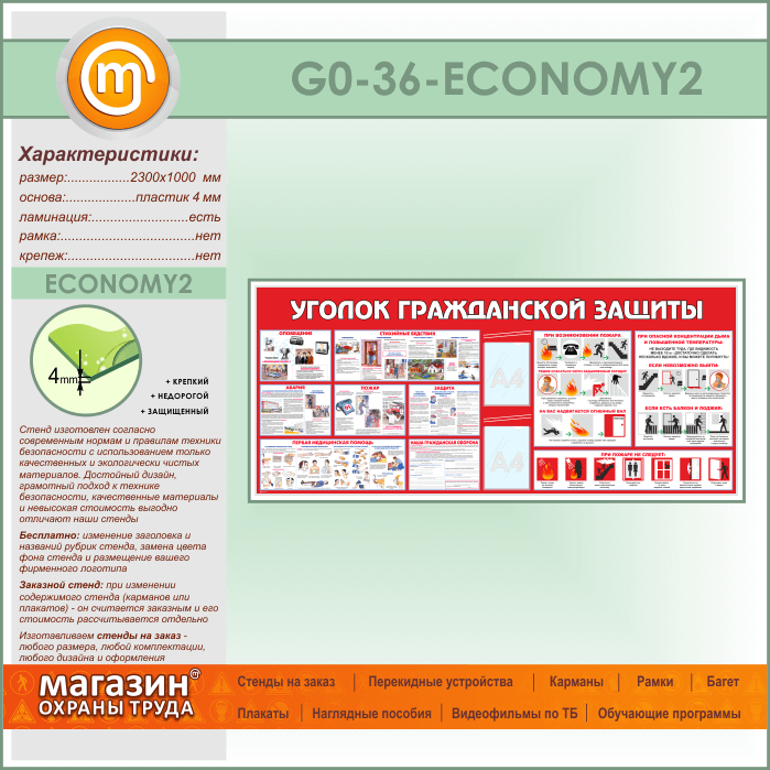 Стенд «Уголок гражданской защиты» c 2 карманами (GO-36-ECONOMY2) в Черкесске купить