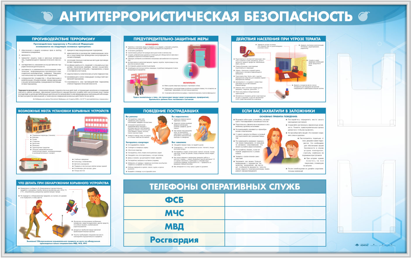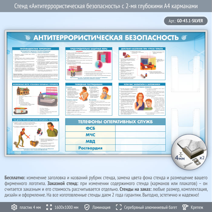 Стенд «Антитеррористическая безопасность» с 2-мя глубокими А4 карманами (GO-43.1-SILVER) в Черкесске купить