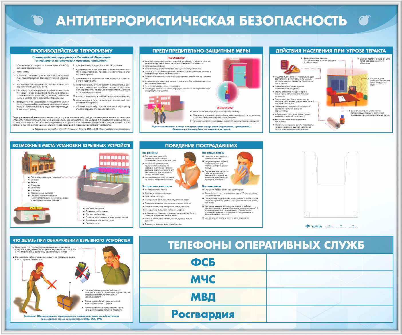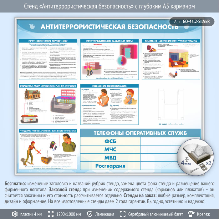 Стенд «Антитеррористическая безопасность» с глубоким А5 карманом (GO-43.2-SILVER) в Черкесске купить