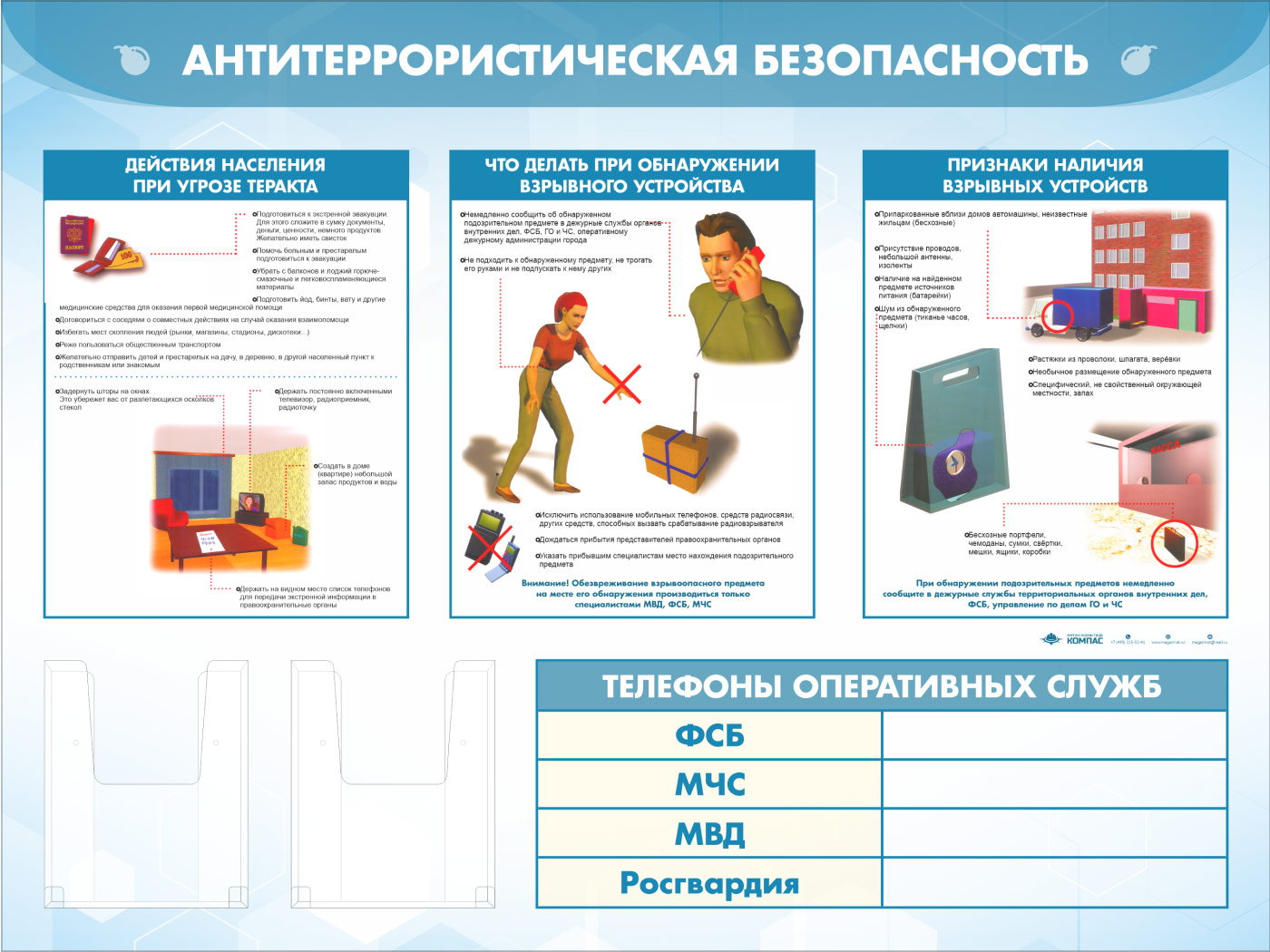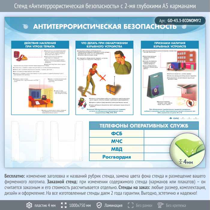 Стенд «Антитеррористическая безопасность» с 2-мя глубокими А5 карманами (GO-43.3-ECONOMY2) в Черкесске купить