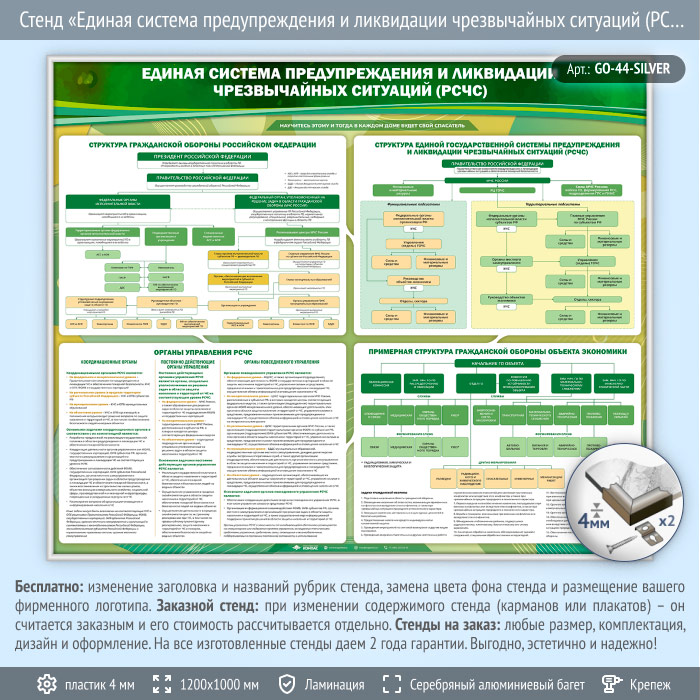 Стенд «Единая система предупреждения и ликвидации чрезвычайных ситуаций (РСЧС)» (GO-44-SILVER) в Черкесске купить