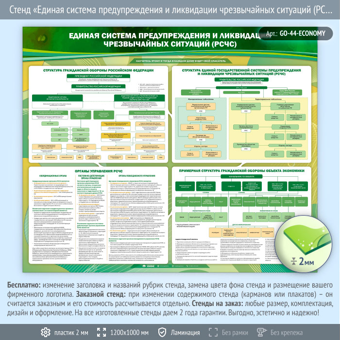 Стенд «Единая система предупреждения и ликвидации чрезвычайных ситуаций (РСЧС)» (GO-44-ECONOMY) в Черкесске купить