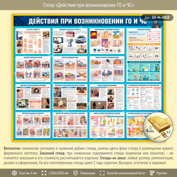Стенд «Действия при возникновении ГО и ЧС» (GO-46-GOLD) в Черкесске купить
